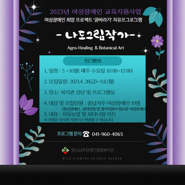 2023년 여성장애인 희망프로젝트 '꿈바라기' 치유프로그램 참여자 모집
