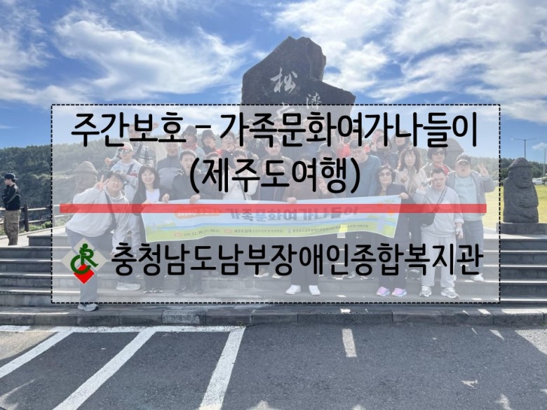 [주간보호팀] 가족문화여가나들이 - 제주도여행 페이지 정보 작성자 송영복 작성일24-11-13 18:13 조회657회 댓글0건 본문 2024년 11월 06일 ~ 08일주간보호이용자 가족분들과 함께 2박 3일가족문화여가나들이(제주도) 여행을 다녀왔습니다.제주도를 관광지를 돌아보며 힐링을 가지고제주도에 위치한 우리복지관에 방문하여 기관 견학에 시간도 가져보았습니다.가족분들 모두 즐겁고 행복한 시간을 보내고안전하게 마무리할 수 있었습니다.여행을 통해 모두가 성장하고 행복하시길 바랍니다.^^ 댓글목록 등록된 댓글이 없습니다. 이전글 다음글 목록